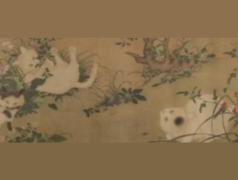 南宋 梁楷 狸奴闲趣图卷。宋代画猫图中经常出现猫与蝴蝶同在的现象,因为古人取“猫”为“耄”,“蝶”为“耋”,“猫蝶”即为“耋耄”之意,取其长寿含义。