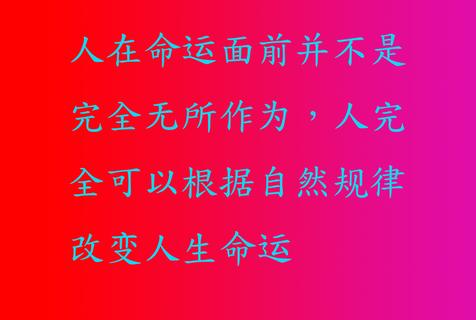 别的大道理不说,只要看一下人类的生育情况,就不难明白。在上一个问答中,我们看到了八字预测人子女多少的口诀,可是现在国家只允许一对夫妇生一个孩子,通过适当的计划生育措施,现在绝大多数年轻夫妇只有一个子女。用八字的传统方法再来算人子女的多少,就算不准了。这算不准的原因,就是人发挥主观能动性的结果。换句话说,人在命运面前并不是完全无所作为,人完全可以根据自然规律,改变人生命运。