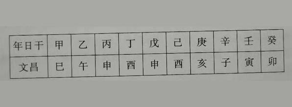 以年、日干查四柱地支。如甲日干见已,乙日干见午即为带文昌星。