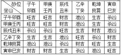 峰砂吉凶速查表: