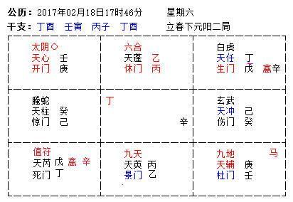开门为工作事业的用神,现在是空的。空说明没工作或者无正当职业。壬加庚克应是太白禽蛇,立剖邪正。天心为中心或者掌握运筹之职,但是太阴又主阴暗不见光的职业。填实时间为巽宫“辰已”两个地支。