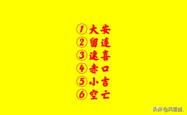 依次为大安、留连、速喜、赤口、小吉、空亡。