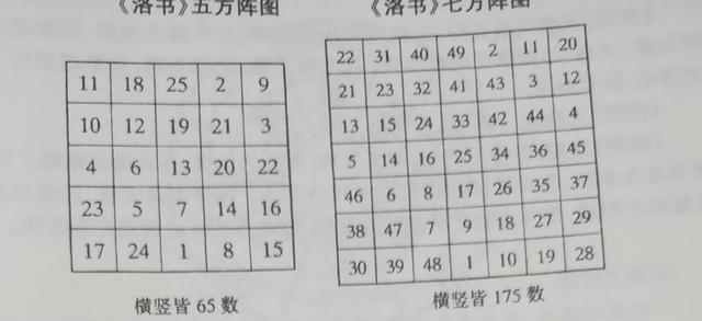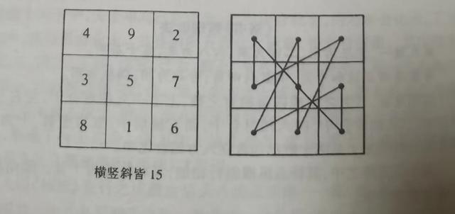 从《洛书》九个数自然排列及行走路线来看,其数理皆出现在数学之几何方阵,堪舆之飞星,奇门遁甲等九宫之中,任何一条贯穿三个数的线,无论横线或斜线,其和数皆为十五。