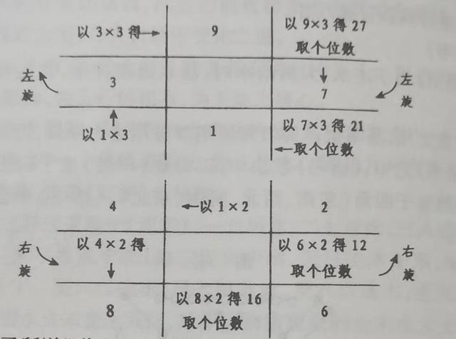 以一三七九为阳,所以左顺为阳,二四六八为阴,故右逆为阴,这就是千古以来阳顺阴逆之秘。其八方相对为合十,亦即一九合十,二八合十,三七合十,四六合十,其中就隐藏着阴阳零正关系。所以,古书中所含藏的天地自然之气,宇宙间万物的生旺衰死全在这九宫之中。