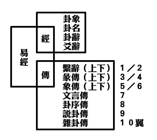 《传》包含解释卦辞和爻辞的七种文辞共十篇,统称《十翼》,相传为孔子所撰。