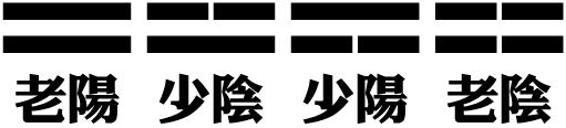 阴阳被称为“两仪”,用符号阳爻“------”和阴爻“-- --”来表示。