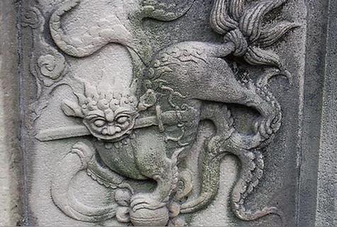 剑狮所咬的剑:据说是神话传说中的龙凤呈祥剑,可以镇宅、祈福。