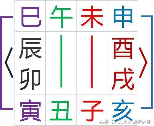 6、酉戌相害——酉方用辰;戌方用午;酉戌之间,辛侧用寅。