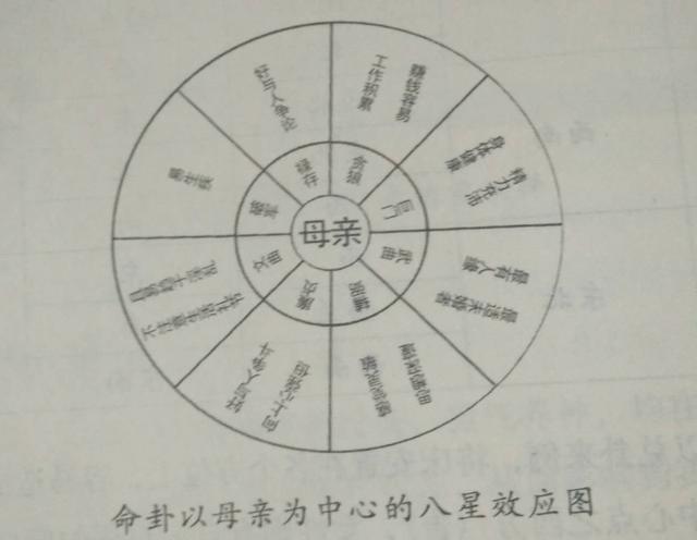 在居家生活中,若以母亲为中心,自己的命卦在母亲四周方位上产生的作用,有贪狼、巨门、武曲,辅弼,廉贞、文曲、破军和禄存。