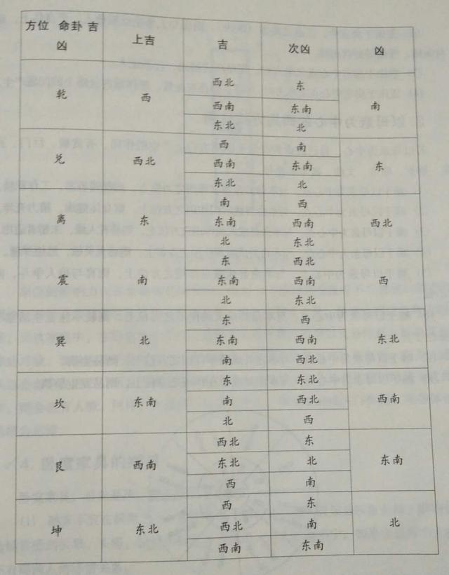为能使读者依其命卦选择最适合之床的方位,阳宅微知识特列表说明如下: