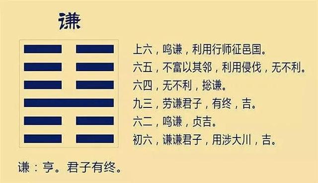 谦卦象征谦虚卑退之意,有谦德之君子万事皆能亨通,而且行谦有始有终。