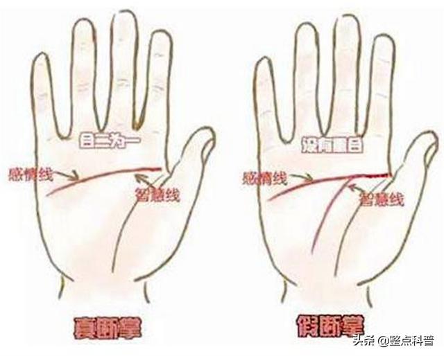 断掌,是智慧线和感情线相交,从手掌的一端至另一端,成一直线横越的相,成为真断掌。