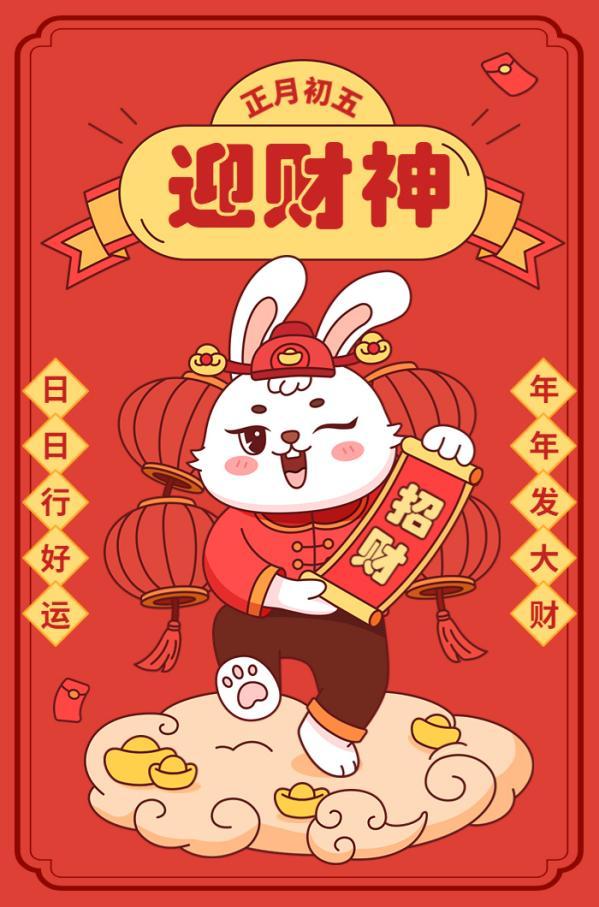 正月初五迎财神。