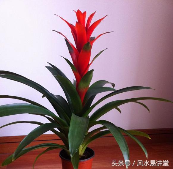 鸿运当头花在株顶或中部开放,作为观赏,寓意吉祥、净化室内空气。花叶繁盛,花色红艳,很有喜庆的气息。