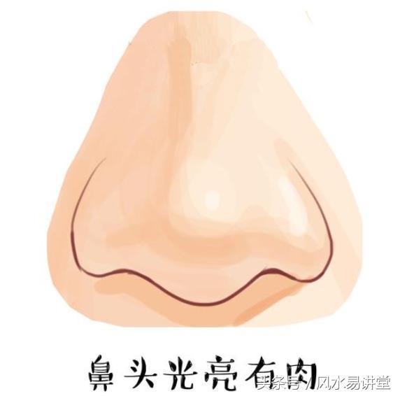 鼻头长得饱满,准头厚实有肉,闪闪发亮像成熟的老蚕,是财运亨通的象征,心中善的一面比较多,这样的人通常能富贵双全,财源滚滚。