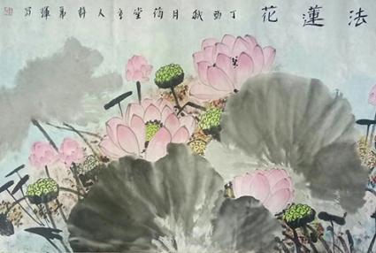 荷花也是莲花,寓意连年有余、和和美美、和气生财,也有祝家庭和睦、和顺等,挂于夫妻房间祝夫妻关系美满,恩爱幸福。家中悬挂一幅荷花图作品,象征主人清高、廉洁等。