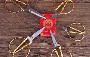 剪刀是传统婚礼中的“六证”之一,生活中用来做衣服的,婚嫁中寓意新娘婚后生活的绫罗绸缎、前程锦绣,与新郎共享人生的荣华富贵。