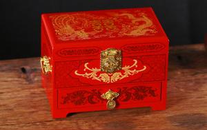 替代古代的压钱箱,是婚庆中女方陪嫁用品之一,古时候是装一些金银首饰等,借习俗来表示女方家境富足,现在我们只会在里面装些女方的衣物。
