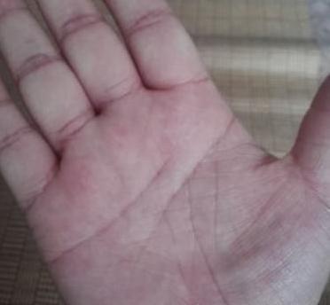 林女士的天纹(感情线),起端有两条,紧密发展,最后才合成一条,说明女士的婚姻会有两段,感情比较纠葛不清,前任丈夫应该不是最爱,后面的丈夫才是真爱,注定头婚离异,二婚才会幸福美满。对于二婚这一点,地纹同样有一样的预示,地纹分叉,持有两家,说明你要再婚。事业上比较一般,财运会有一点,衣食无忧不是问题