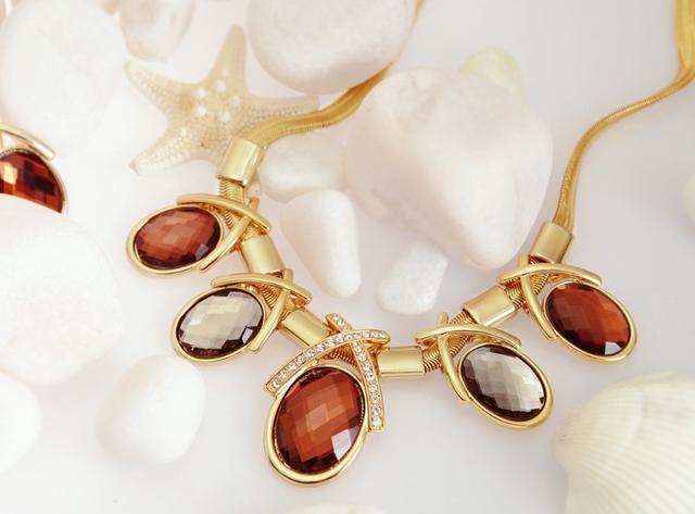 金牛座专属宝石项链,是咖啡色与茶色水晶的搭配,雅致大气,交叉式的黄金编织工艺,让整体造型充满设计感,让金牛座气场十足。