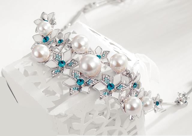双子座专属宝石项链,是冰凌雪花的造型,用浅蓝和透明碎钻镶嵌而成,一颗一颗圆润的白色珍珠如同仙女的眼泪,整条项链如同冬日仙境中的至宝,双子座的你,喜欢吗?