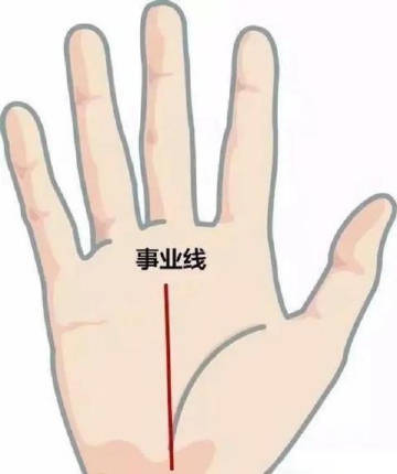 每个人的手掌中间都有不一样的纹路,纹路代表着我们的运势走向,这四条主线分别是感情线、婚姻线、生命线、智慧线与事业线。手掌中间的线是事业线。事业线是预示事业是够成功的一条线。事业线的主要位置就是,起于掌心的下方也就是靠近手腕的部位,向上延伸至中指下端的一条竖纹。
