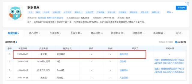 据不完全统计,在2021年之前,类似测测星座APP的算命软件中,有31家公司获得过融资。