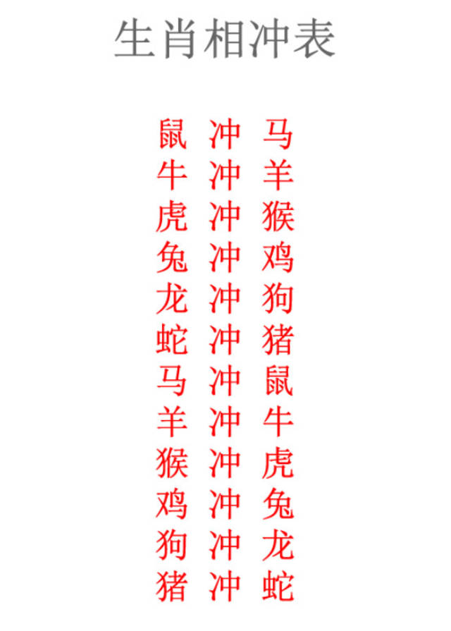 相冲:指双方之间意见不合、容易产生冲突,会彼此相克。两人性格脾气与立场观点方面,会形成很大的差异,所以,相处起来矛盾重重,不过越是相冲的人,却越是容易相互吸引,物理学上的异性相吸之故,不过虽有感情的吸引,但双方性格与观念相差极大,有时难以融合,所以很难相处,即使勉强走过一段路程,但最终分道扬镳的可能性极大!