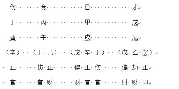 那么到底以哪个为主呢?一般说,以月令上透出为第一优先格。比如这个八字,就是以伤官为第一格,这个格局就叫做伤官生财格。