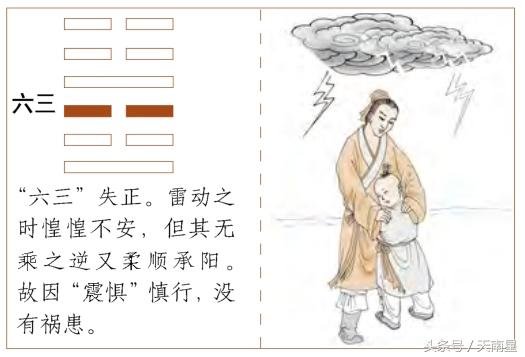 【白话】《象辞》说:“雷震动恐惧不安“,说明六三爻所处的位置,不中不正,不适当。