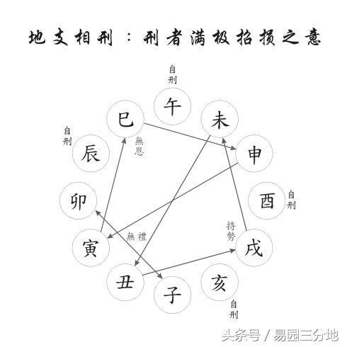 易园三分地点石即成金:地支相刑,往往会体现出伤病之灾、手术、或犯刑罚等。自刑的意思是自己与自己相刑,自己跟自己过不去,自己给自己找麻烦,如割腕自残等信息。