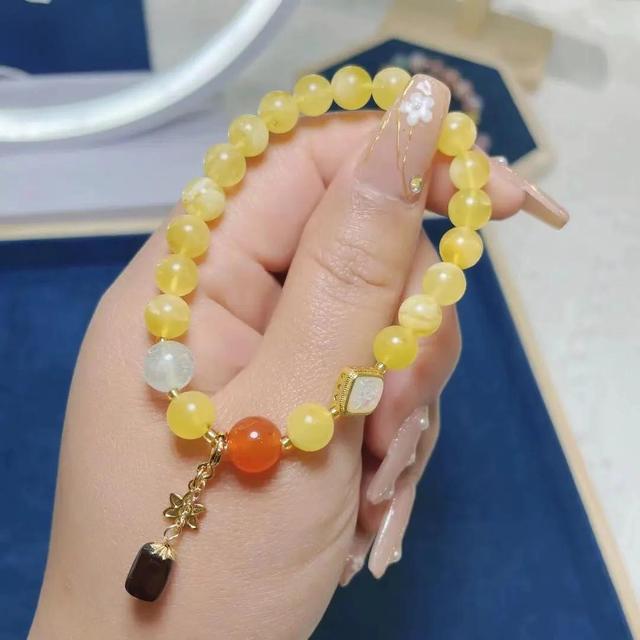 佩戴蜜蜡手串寓意着甜蜜。其散发的淡淡的香味,给人一种沁人心脾的感觉,能够让人产生甜蜜的幸福感。