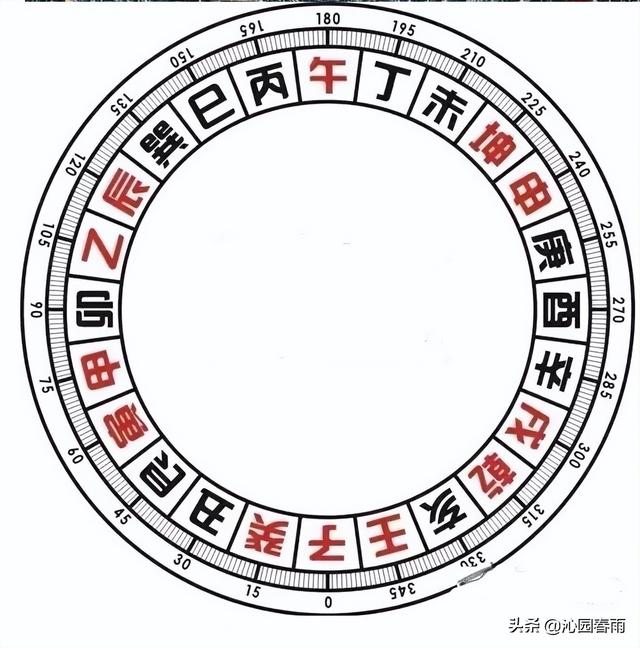 在三元盘中,根据上期我们知道,三元盘只有一层基本方向圈,它的二十四山阴阳却与三合盘不同。