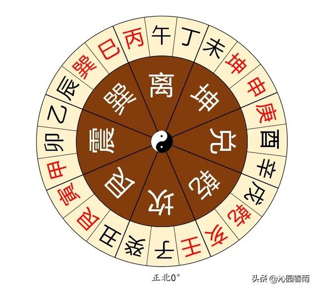 罗盘中二十四山对于阴阳的划分,是根据四正卦:坎、离、震、兑;和四隅卦:乾、坤、艮、巽,进行划分的。