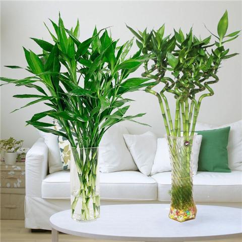 一般我们市场买的富贵竹都是十棵一把,水培富贵竹都爱一股脑的放在一个花瓶中。一米高的富贵竹大约用三四十厘米高的花瓶比较搭配。如果觉得富贵竹个子太高,可以用剪刀斜剪下去一部分。剪下的部分也可以土培,这样一棵富贵竹就可以一分为二。