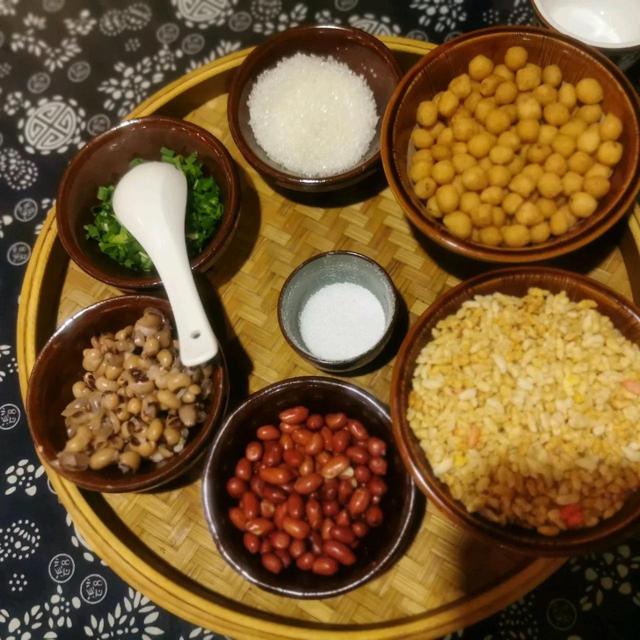侗族饮食习俗。桂北其他各族也有。用茶叶、包谷或糯米炒香、熬煮取汁与糍杷Q、黄豆、花生等配制而成。吃时加姜丝、葱花、胡椒粉、鱼腥草·等佐料。还有打虾米、鱼崽、粉肠、猪肝、瘦肉等荤油茶的。“有客到我家,不敬清茶敬油茶”是侗家的规矩。打油茶时,主、客围坐火塘,主妇负责烹调、送茶。第一碗必须端给贵客或长辈。主人说声请,客人方可饮用。连喝4碗,是表示对主人的最大尊敬。农历九月十五日,侗族青年走寨时,更兴喝油茶,要连喝15碗,边喝边对歌。油茶能提神、祛风湿、防治感冒、增进食欲,有很好的保健、医疗作用。