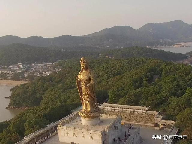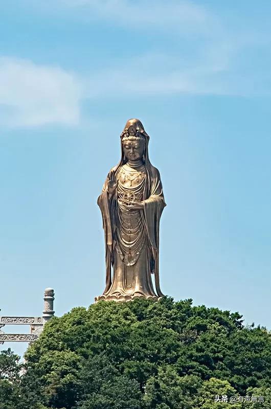普陀山和海南的三亚都有南海观音。三面朝向的观音是在三亚,金身的观音是在普陀山。