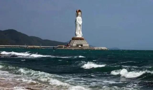 1993年中国国务院宗教局和海南人民政府批准兴建三亚南山寺,并在寺前的海中塑108米高之海上观音圣像,属于南山文化旅游区。此像由海南三亚南山功德基金会发心敬建,一体化三尊,巍峨壮观,实乃世界造像之最。