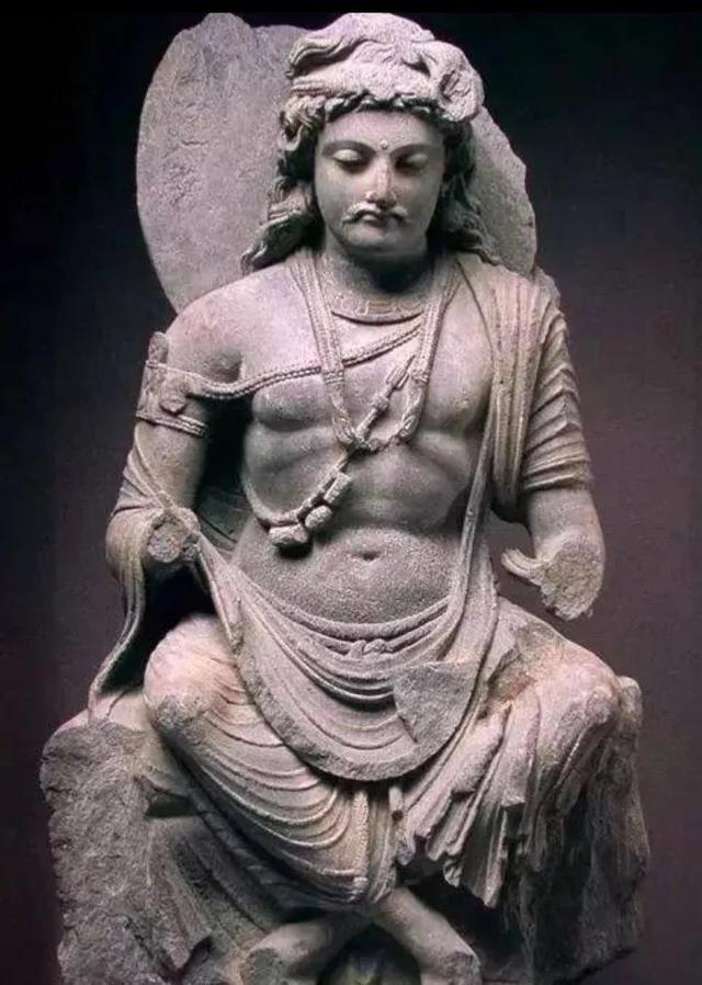 如现代人般坐在椅子上双手作说法印,代表他将来成佛后会广宣佛法,他的双手各拈一龙华树的花茎,象征他将于龙华树下示现成佛之相,弥勒左手所持的花心中托着一个水瓶,象征他将生于婆罗门族中,右手所持的花心中托着一个法轮,象征他将马上站起来由兜率内院下降人间利益众生。