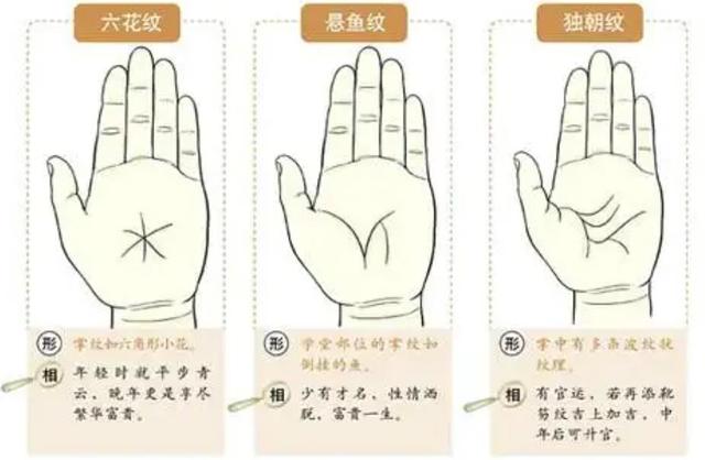 我国民间的手相文化历史悠久,早在西周时期就已经盛行,到了西汉,相学家许负就已经写了一本相对完整的手相论著——《许负相法》,后来随着时代发展,相学大师层出不穷,演变到后期,古人就将手相学归附于相学中的一小部分。手相即古人利用手的粗细、手掌的纹路来推衍出未来的运势,在古代风靡一时。关于手相的俗语有很多,比如“掌中川字纹,富贵不离身”“三才纹在手,富到九十九”“手握悬鱼纹,年轻有作为”等俗语。“川字纹”“三才纹”前文多有解释,这里的“悬鱼纹”,古代相学家又有什么说法?