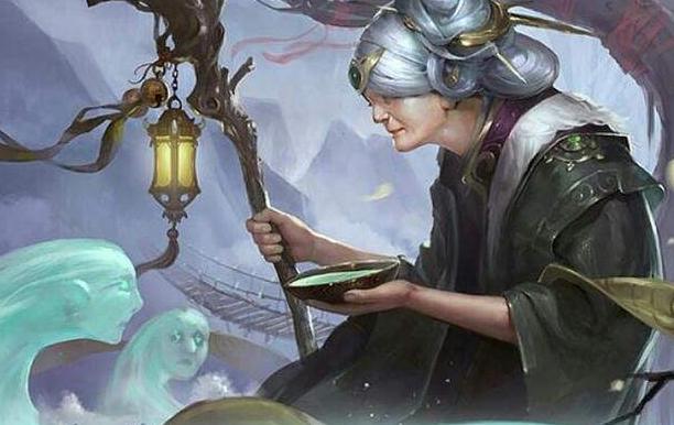 据说人在死亡之后,灵魂会先上黄泉路。在黄泉路的尽头有一条叫做忘川河的河流,河流上边的桥叫做奈何桥。而孟婆就是在这座桥上,等候着每一个从此经过的人,并会送上一碗孟婆汤让灵魂喝下。一旦灵魂喝下孟婆汤,所有的恩恩怨怨全部都会忘掉,最终成人成仙,或成畜。