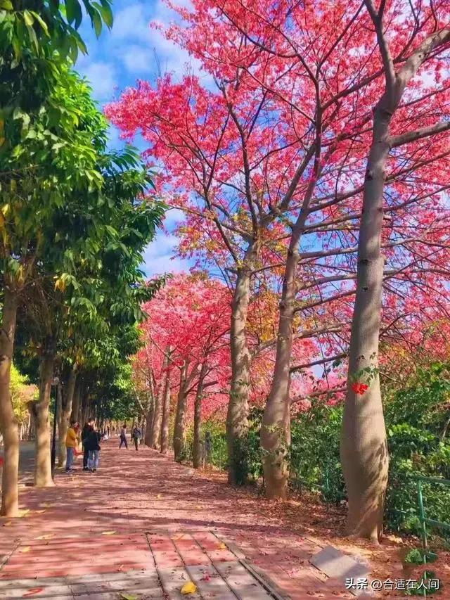 那一年我正为毕业课题和找工作这两件事而焦头烂额。那一趟广东之旅,解决了工作的问题,心情轻松许多。车窗外,广东冬天阳光灿烂,蓝天白云下,路边依旧有花在怒放,高大的花枝随风而摆,花影婆娑,时不时地有花瓣稀稀疏疏地落下,将地面铺成了粉红的地毯,看得人赏心悦目,烦恼顿消。在我看来,它绝对是冬天里最惊艳的花。