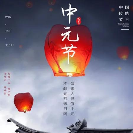 中元节,是道教名称,民间世俗称为七月半、七月十五、祭祖节,佛教则称为盂兰盆节。中元节日习俗主要有祭祖、放河灯、祀亡魂、焚纸锭、祭祀土地等。它的诞生可追溯到上古时代的祖灵崇拜以及相关时祭。七月乃吉祥月、孝亲月,七月半是民间初秋庆贺丰收、酬谢大地的节日,有若干农作物成熟,民间按例要祀祖,用新稻米等祭供,向祖先报告秋成。该节是追怀先人的一种文化传统节日,其文化核心是敬祖尽孝。但现在的中元节除了其传统意义更有一层新的含义!