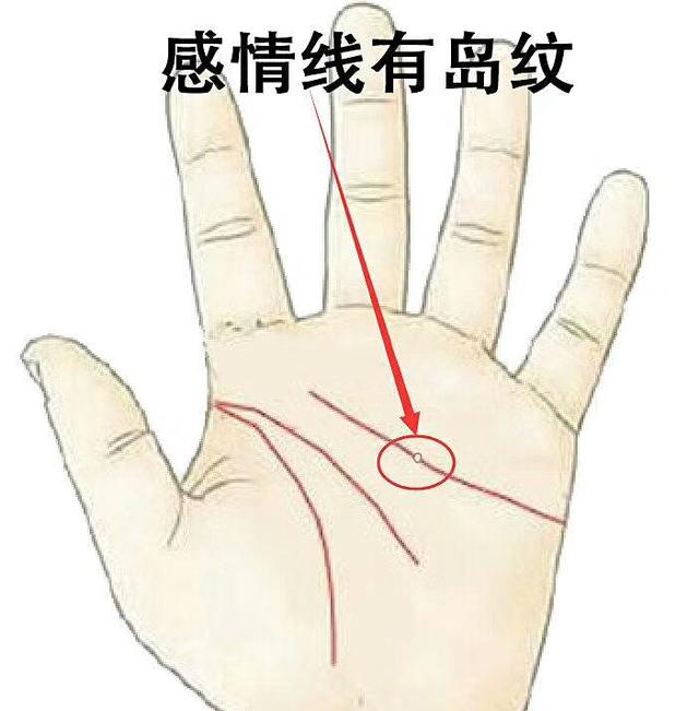 2.感情线有岛文:感情缺乏稳定,夫妻间产生矛盾不宜和解。