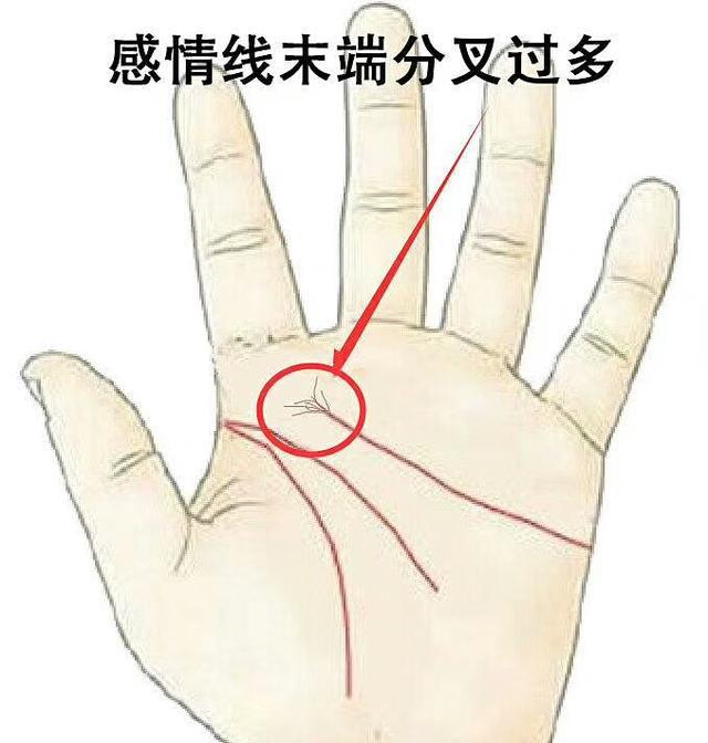 3.感情线末端分叉过多:感情丰富而迷人,但缺乏信任尤其是异地恋不得长久,很难稳定。