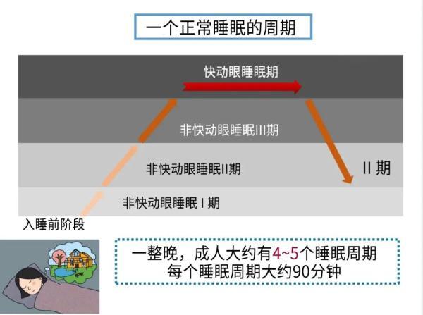 一整晚,成人大约有4~5个睡眠周期,每个睡眠周期大约90分钟。在快动眼睡眠时,我们开始做梦,进入熟睡的阶段,大脑的活动状况与清醒时相似,但全身其他系统处于麻痹状态。
