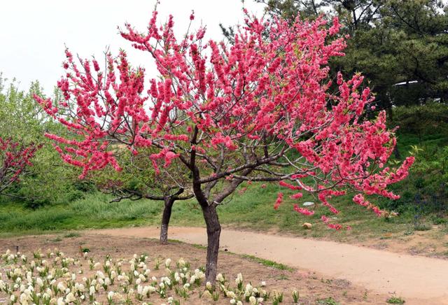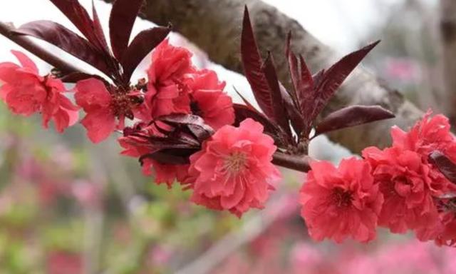 棠棣之花不是棣棠花,棠棣是蔷薇科樱属的灌木,俗称“碧桃”,它的叶片是披针形,茎长而花下垂,两三朵为一缀。花期在春季的3-5月,常见有白色和粉红色。