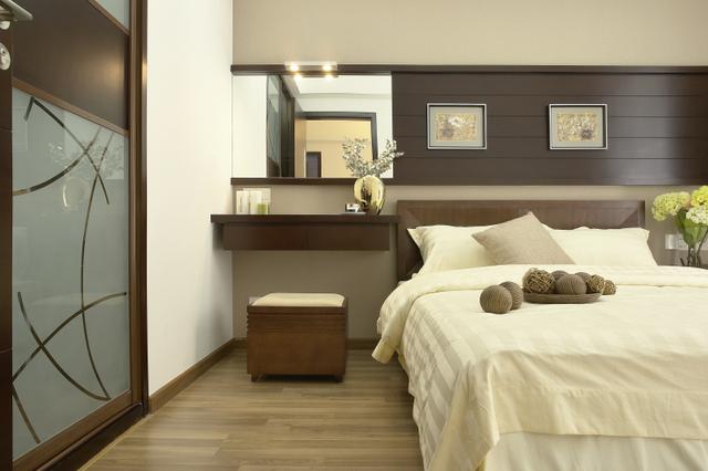 在别墅卧室设计时空间的大小要适度,顶棚的高度不应少于2.4m,面积不应小于每人6平方米。卧室属私人隐密空间,不应太大,以免空旷,缺少亲切感。卧室空气要清新,温度高低适中,能催人入眠。