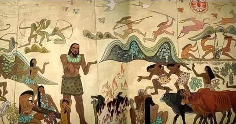东汉·应劭《风俗通义·祀典》中记载:《黄帝书》云:“上古之时,有荼与郁垒昆弟二人,性能执鬼,度朔山上立桃树下,简阅百鬼,无道理妄为人祸害,荼与郁垒缚以苇索,执以食虎。”