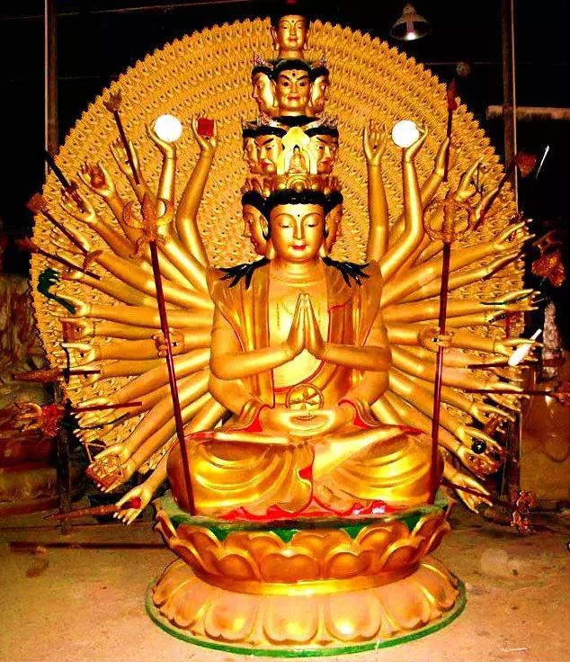大家到齐后,观世音菩萨偷偷使了个神通,一瞬间,令十方刹土全部变成了金色,山河大地全部震动,日月星辰也都黯淡无光。其实,这不是观世音菩萨调皮,而是为了与佛陀以及诸大菩萨配合,利益大众而宣说《大悲咒》,以这种方式引出以下一系列的对白。